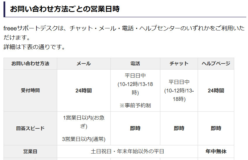 freeeサポートデスクにメールで問い合わせへをしたときの回答スピードは、次のようになっています。