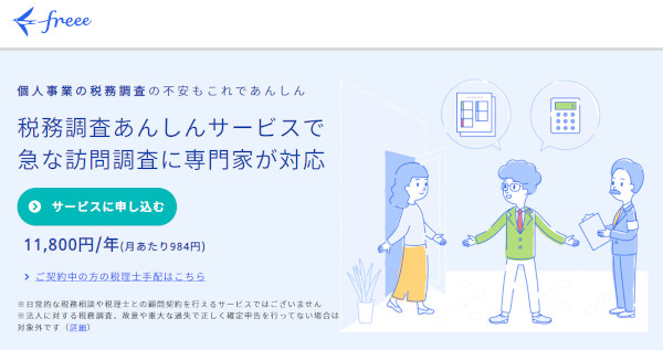 税務調査にかかる税理士の事前準備、当日の立会、事後対応をサポートしてくれるとのこと。